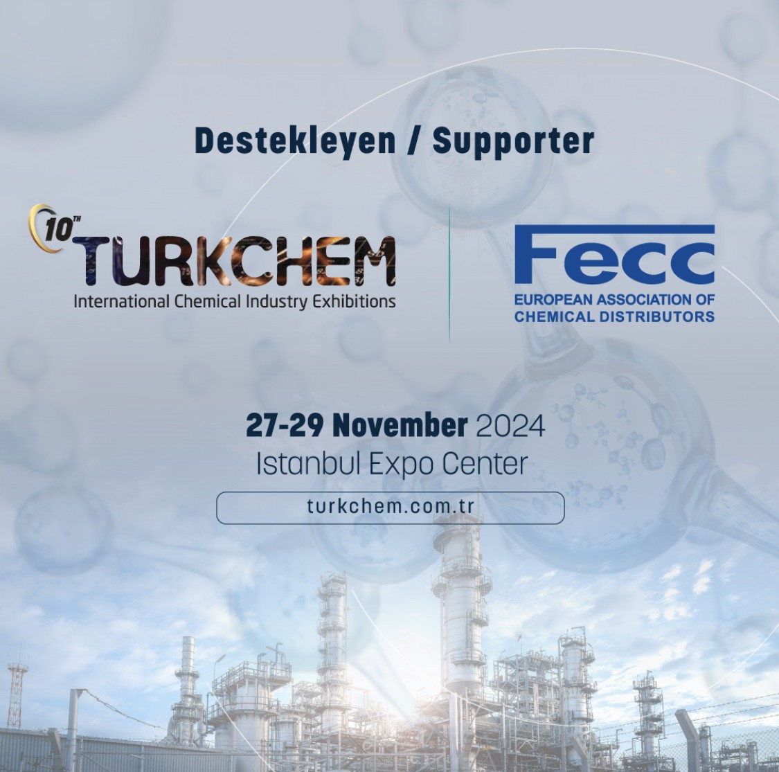 The leading exhibition of the chemical industry, Turkchem Eurasia, for the first time ever, partnered with FECC (European Association of Chemical Distributors). Held in Istanbul from November 27-29, 2024, Turkchem Eurasia gained a new dimension with FECC’s participation. FECC officially opened the exhibition by cutting the ribbon alongside prominent representatives from the Turkish government and key industry leaders. This meaningful inauguration once again highlighted the strength of our collaboration and its impact on the industry.